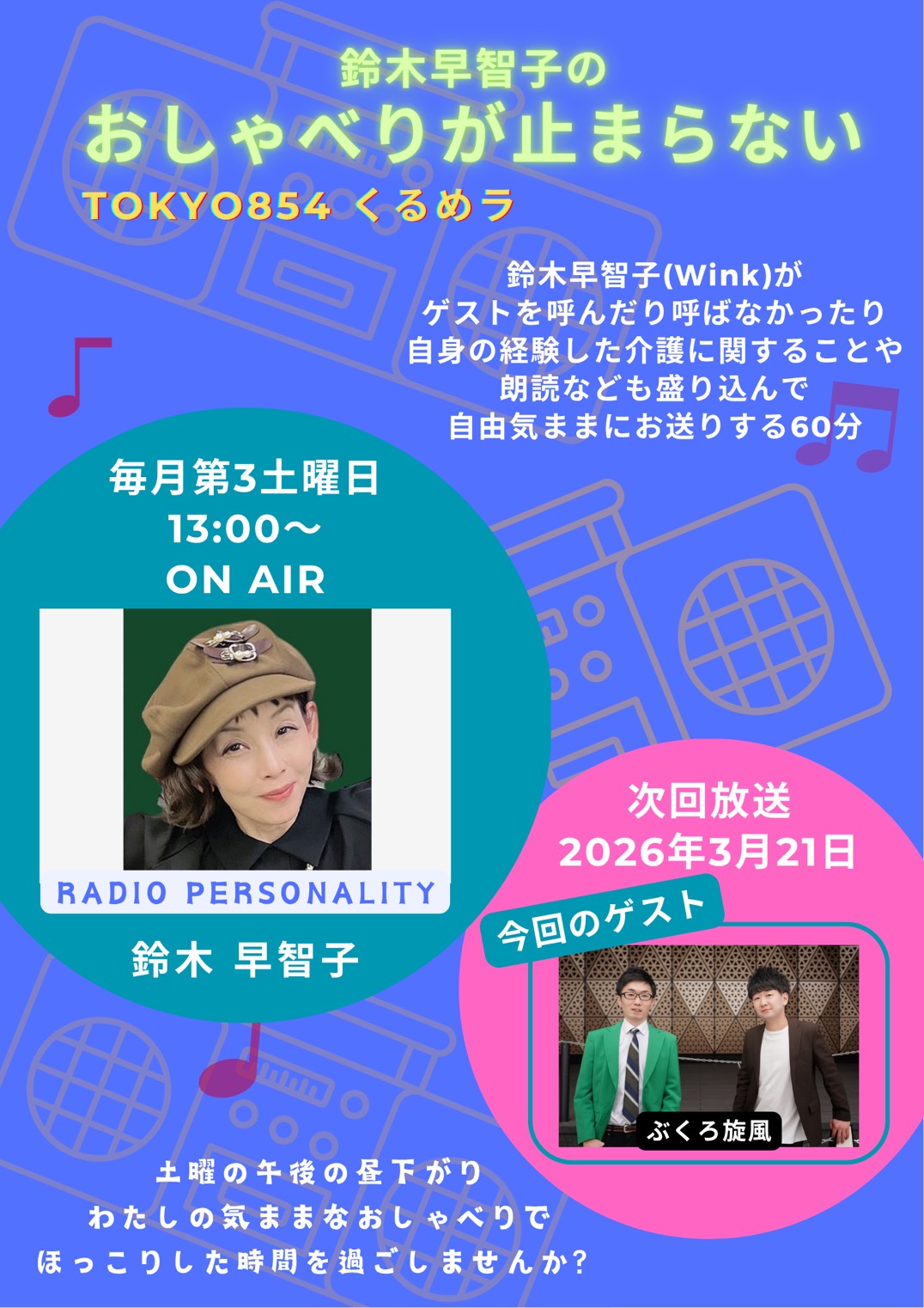 鈴木早智子がメインパーソナリティを務めるラジオ番組「おしゃべりが止まらない」
